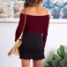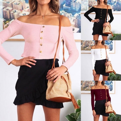 A perfect top for any occasion.Solid color style, with long sleeve,boat -neck design, which can appear your