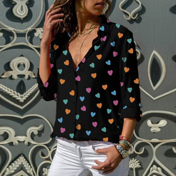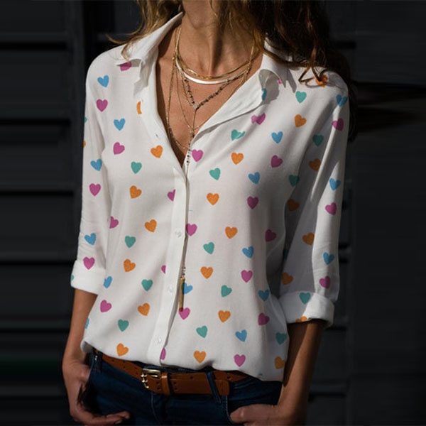 You can easily have a sweet and charming look with this shirt! The heart printed details make this piece