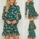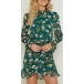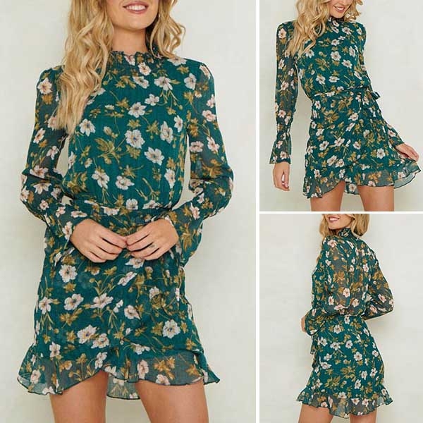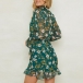 Sweet Style Long Sleeve Stand Collar Ruffle Hem Printed Dress
