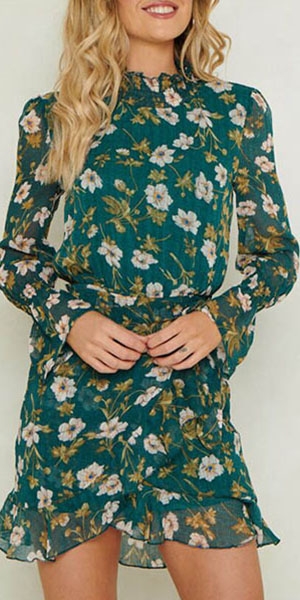 vibrant and eye-catching floral print details,finished with long sleeve,stand