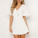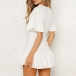 this dress. It boasts pure white color,the lotus sleeve,ruffle hem and v-neck design will lend you a dash of