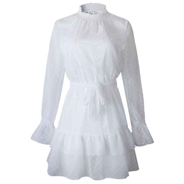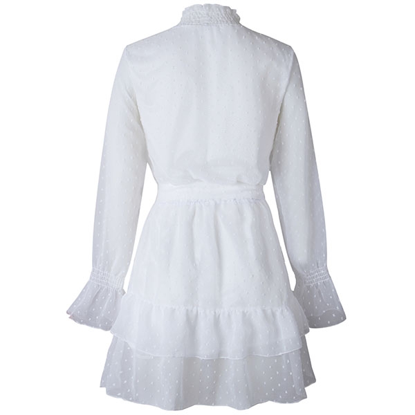 attractive,while the ruffle stand collar and ruffle hem design can easily enhance its charm.
