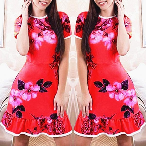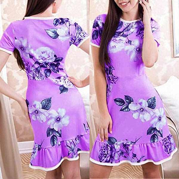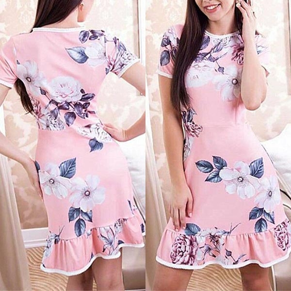 Finished with short sleeve,round neck,ruffle hem and a fit silhouette design,this dress not only can