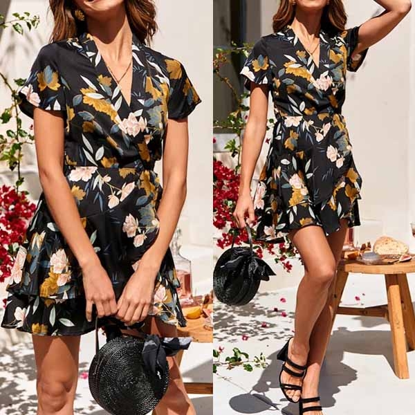 Easy to achieve for a sweet and fresh style with this beautiful dress. Boasts vibrant floral print,the v-neck