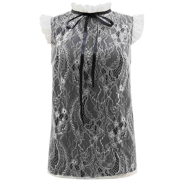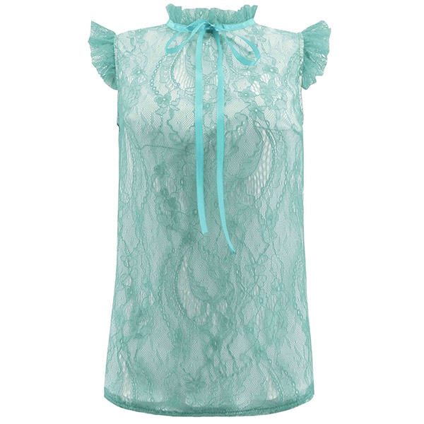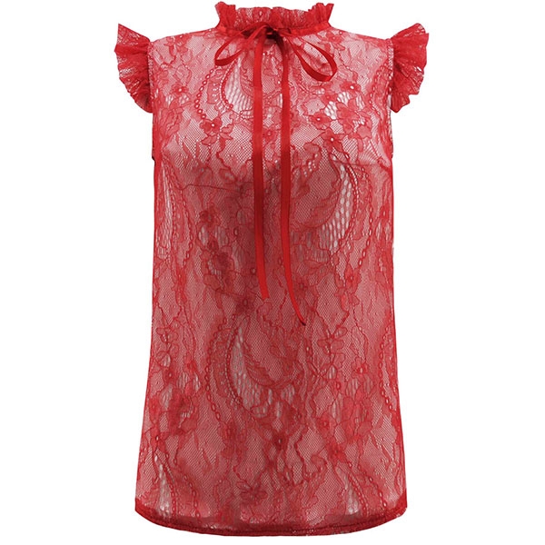 Add a dash of sweet yet feminine vibes to your wardrobe with this sleeveless lace top. The ruffle