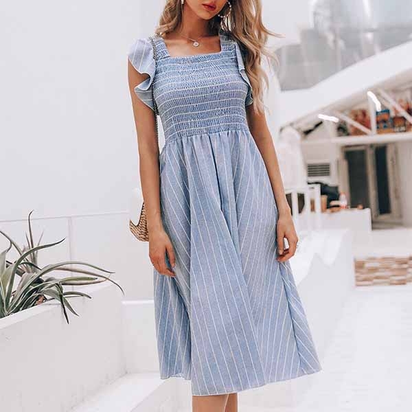 Sweet Style Sleeveless Square Collar Ruffle Striped Dress