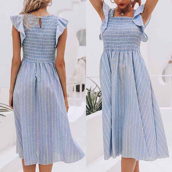 if you have this dress in your team. Designed with striped element,the ruffle and square collar design can