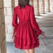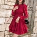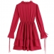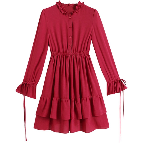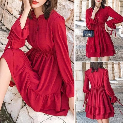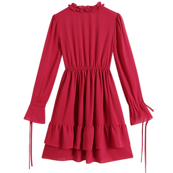 Any girl can look effortless sweet and charming in this beautiful dress. It is finished with trumpet sleeve,ruffle collar and an elastic waist,this dress can