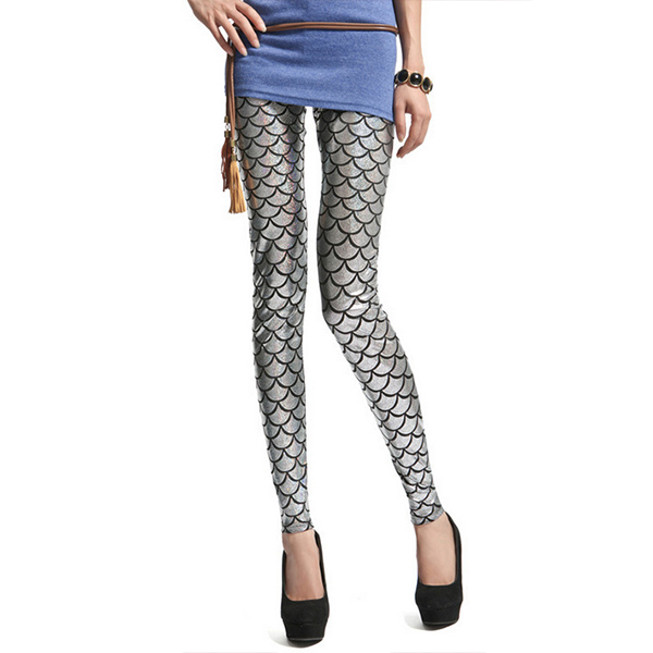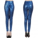 Fashion High Waist Fish Scales Printed Faux Leather Skinny Leggings