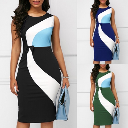 Brazil Flag Print Curved Waist Slinky Tank Dress