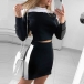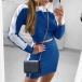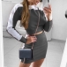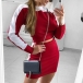 Fashion Contrast Color Long Sleeve Crop Top + Skirt Two-piece Set