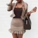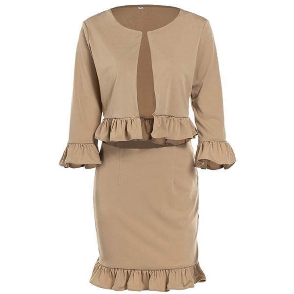 For your busy workdays,you can trust in this two-piece set to win more attention. Solid color tone design makes it look simple,generous yet elegant,while the ruffle