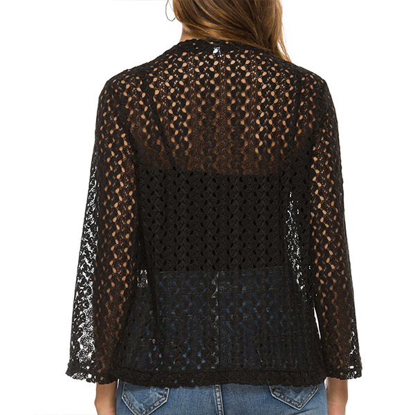 The design of this lace outerwear is very chic. Its floral crochet design makes it looks vey sweet and chic. Its irregular hemline makes it looks stylish and elegant. The outerwear is made of high quality lace. In it, you will feel its soft texture. Have one and pair it with a white or black vest.