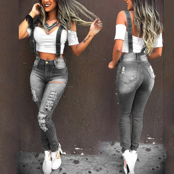 The denim overalls has solid color and gathered waist design, it can show your figure slim.