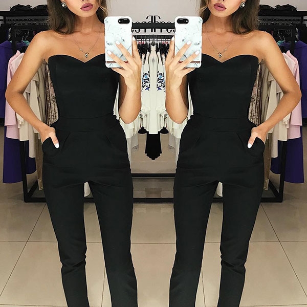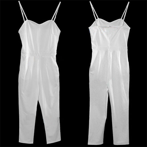 En sexig jumpsuit är också ett bra val för dig i sommar och den kan ge dig en annan typ av mode och skönhet. Den har v-ringad och axelbandslös design, sexig och mode. Din smala och förföriska kurva kan perfekt visas av denna tiondelsbyxa.