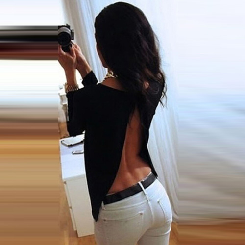 This tops features solid color style,with backless design,adding its sexy flavor. 3/4 sleeve,round neck