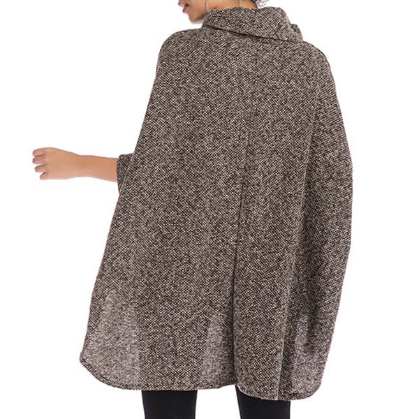 You can easily draw more attention when you wear this cloak! Its chic and unique design details like dolman sleeve,turtleneck and irregular hem make this piece look so distinctive. We suggest you matching with a tight pants to start your fashion street shoot!