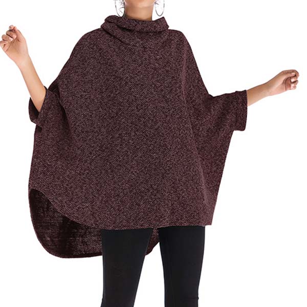 Chic Style Dolman Sleeve Turtleneck Irregular Hem Cloak Top