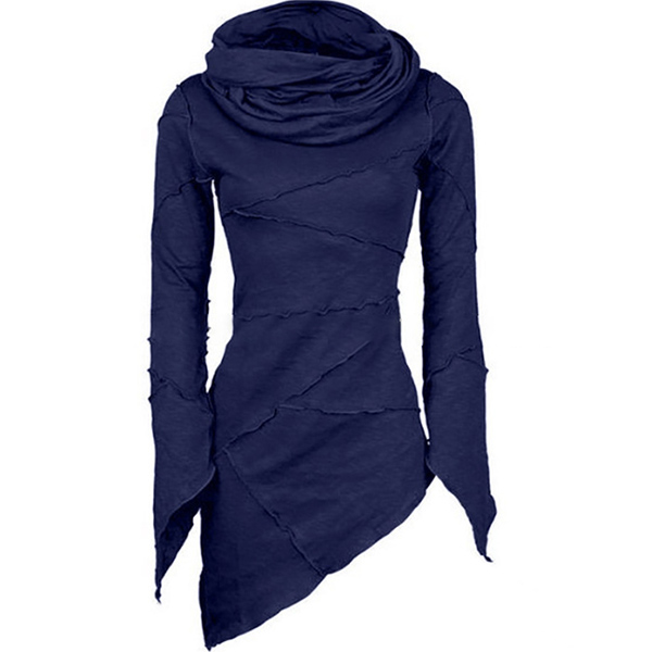 This wonderful top that bears a chic,unique design style is a good way to exude your personality! Solid color style,the unique cuff,irregular hem and cowl neck design are the highlights,which make this piece look so distinctive. Definitely,your style also can have an update when you wear this piece.