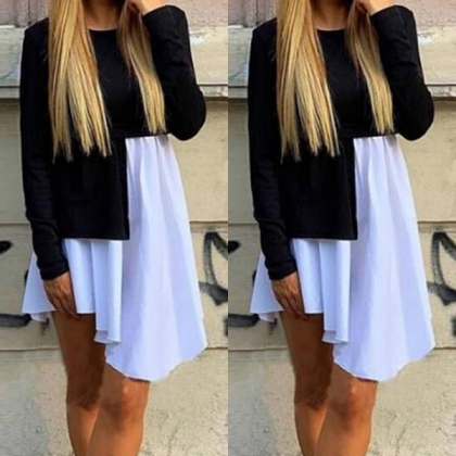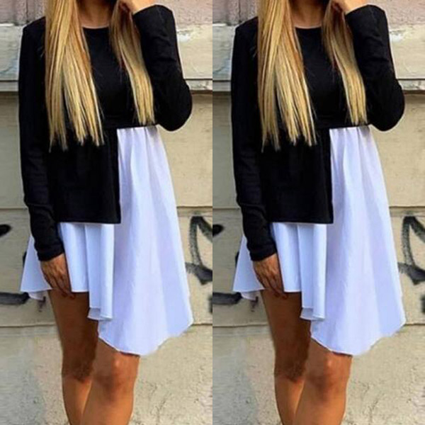 Your chic and stylish personality can have a full display in this dress. Contrast color and irregular hem design make this piece look so distinctive and attractive,while its cozy fabric will give you a comfortable day. When you wanna update your style,this piece is a good choice.