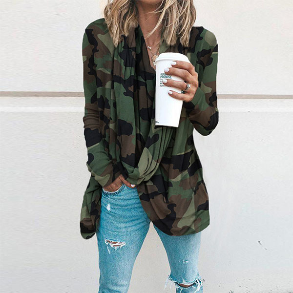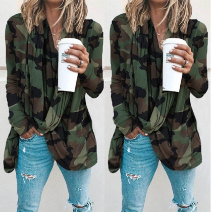 Display your style and personality through this chic top. The camouflage printed details make this piece look so eye-catching,while the v-neck and irregular hem design will further enhance its charm. Like this style? Then have a try it!