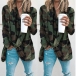 Chic Style Long Sleeve V-neck Irregular Hem Camouflage Printed Top
