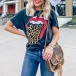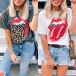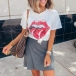 Chic Style Red-lip Printed Short Sleeve Round Neck T-shirt