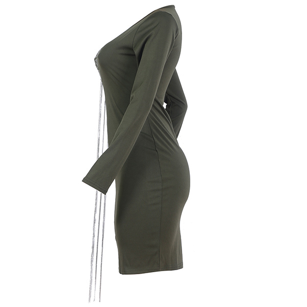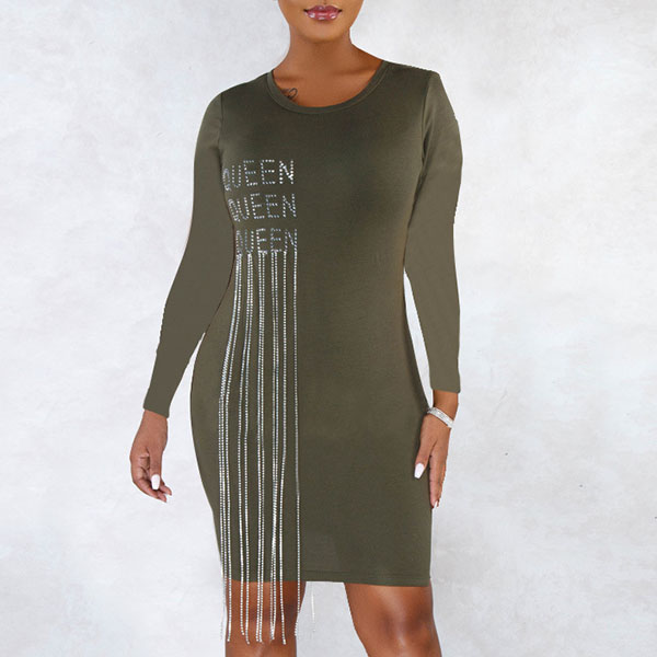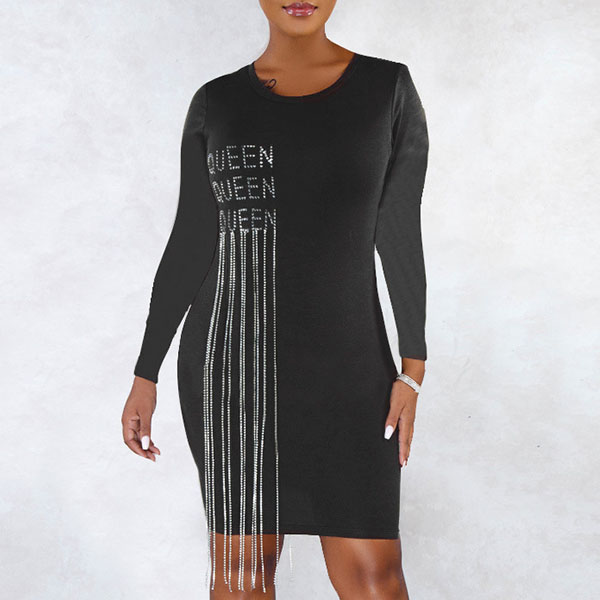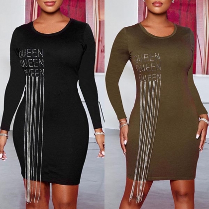 Chic Style Rhinestone Letters Slim Fit Tassel Dress