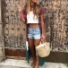 Chic Style Short Sleeve V-neck Contrast Color Cardigan