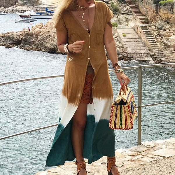 Your chic style and personality can have a full display in this cardigan. Contrast color design makes it look not so simple and dull. Finished with short sleeve,v-neck and single-breasted design,this little piece can give you a chic and eye-catching street look.