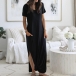 Chic Style Short Sleeve V-neck Slit Hem Solid Color Dress