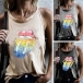 For these hot summer days,this sleeveless t-shirt can easily strike your mind. Its soft and breathable fabric can offer you a cool and comfortable day,while the chic printed pattern design will lend you some extra charm.. Try to match with your shorts or skirts to enjoy your summer time.