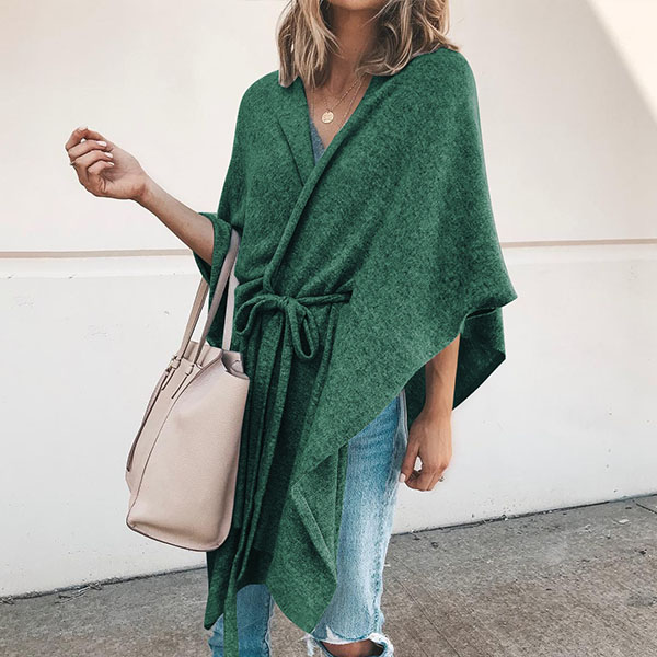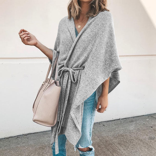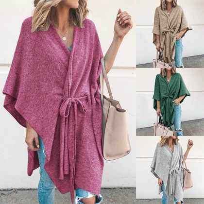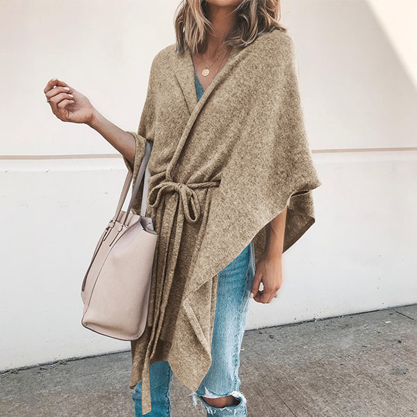 Hey,girls,it is a good chance to keep you warm while maintaining your personality through this knit cardigan. Cloak-style design makes this piece look so chic and unique,while the lace-up design at the waist part will further enhance its charm. When strolling on the street with this piece,you can easily be a pleasant sight!