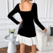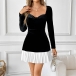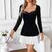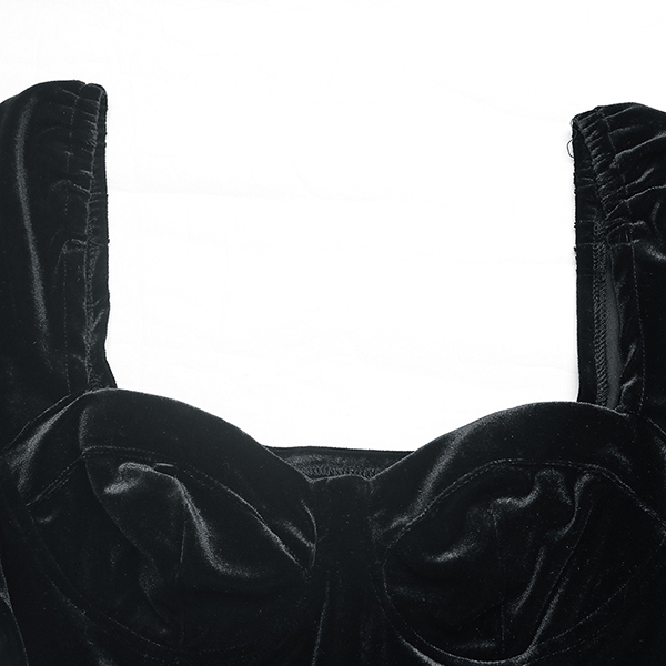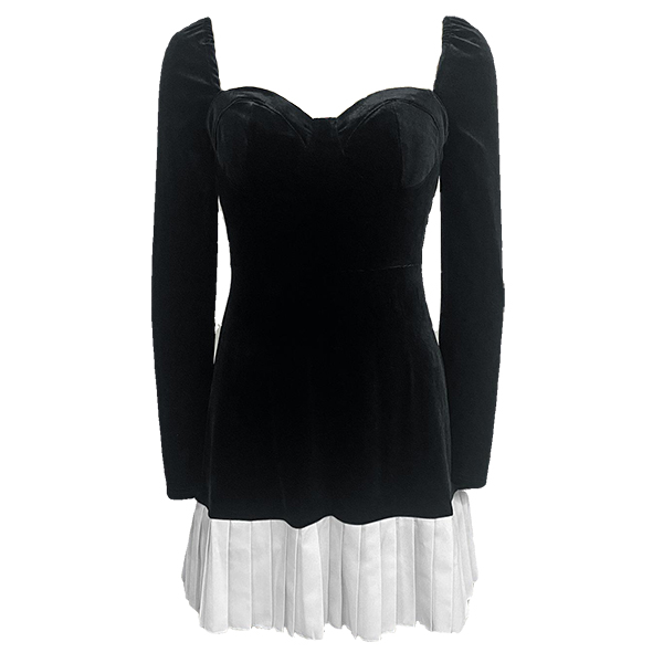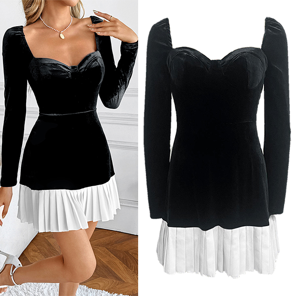 Festklänning i svartvit sammetsdesign med hjärtformad urringning