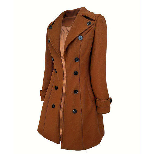 Denna jacka har ett tidlöst slag med hak, en strukturerad dubbelknäppning och lyxig ullimitation som ger modern, professionell elegans. Perfekt för vardagsbruk.
