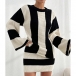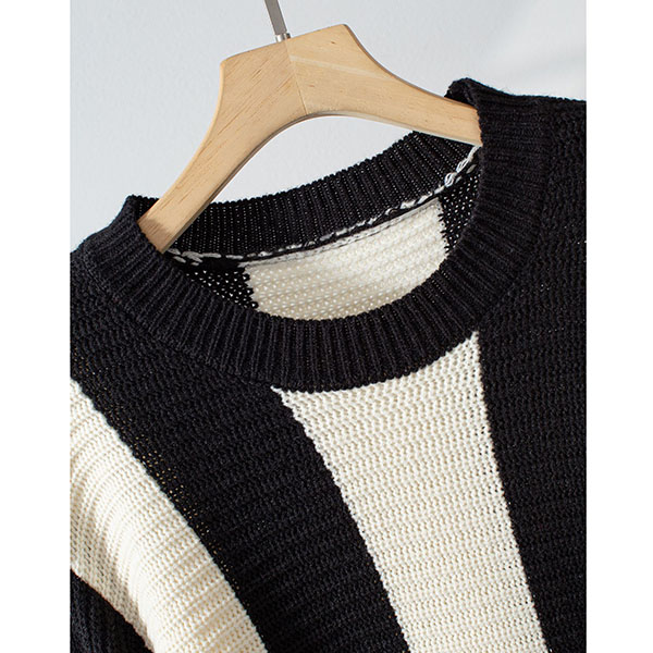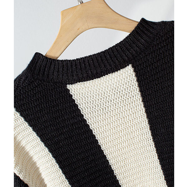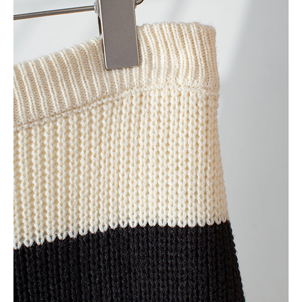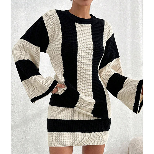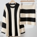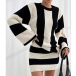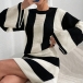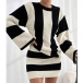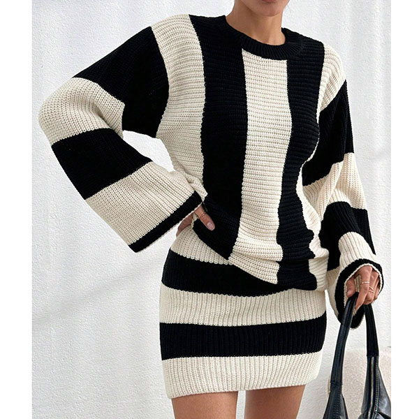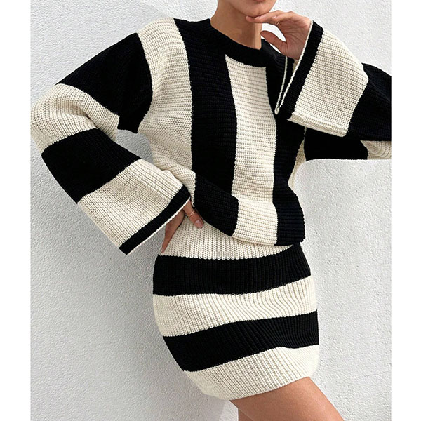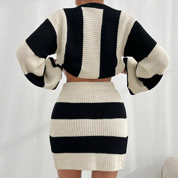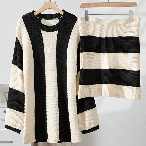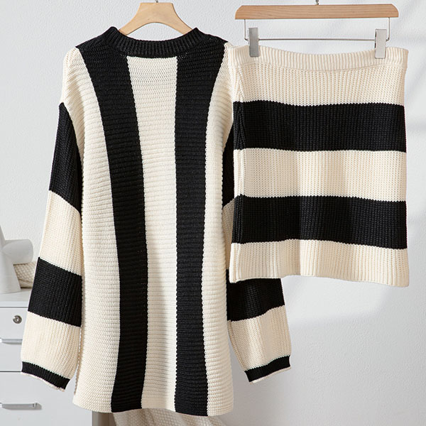 Tvådelat stickset i kontrasterande färger med randig tröja och matchande kjol