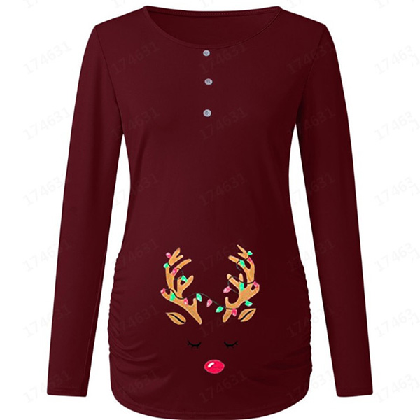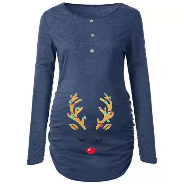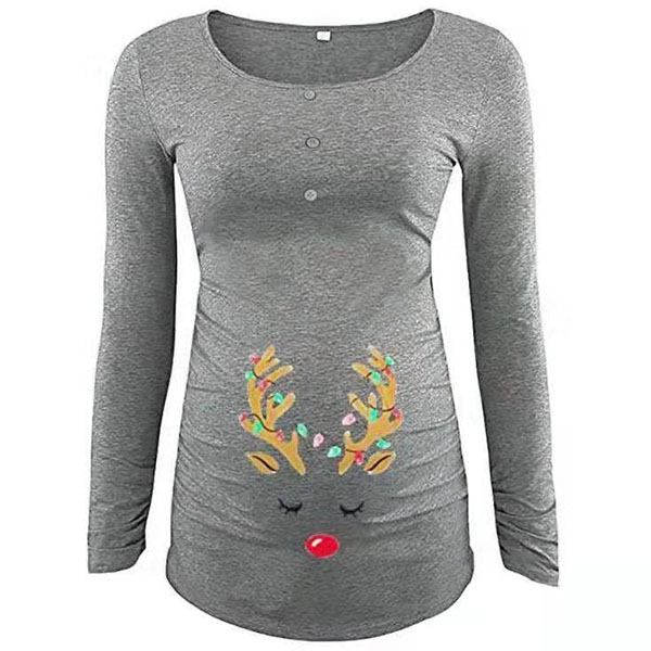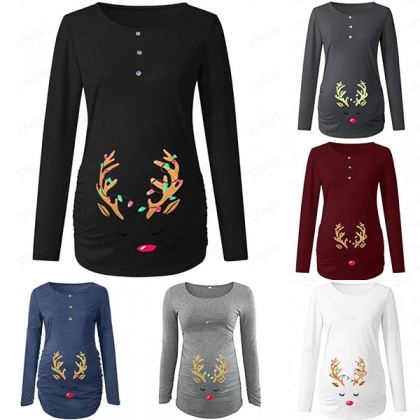 Cute Antler Printed Long Sleeve Round Neck Maternity T-shirt