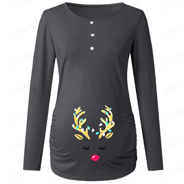 For these pregnant women,comfy is the most important thing. Luckily,this maternity t-shirt can ensure an utmost comfort with its super soft and breathable fabric. Finished with long sleeve and round neck design,the antler printed pattern design will add some lively and playful vibes. A perfect choice for your pregnant time!