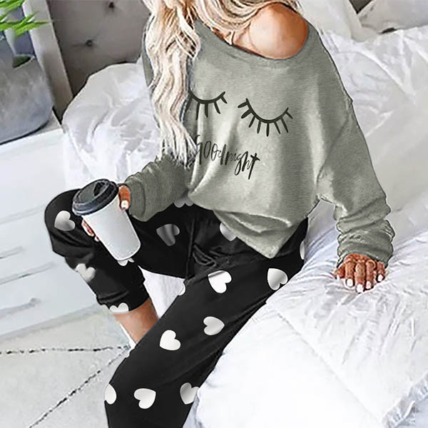 You deserve to have an utmost comfort during your home time. So we suggest you this two-piece set. Including a long sleeve t-shirt and a pants,the cartoon printed and heart pattern design make it look more playful and stylish. Simple,cozy yet lively,this two-piece set is your perfect partner for your home time and sleeping time.