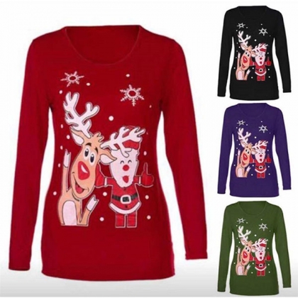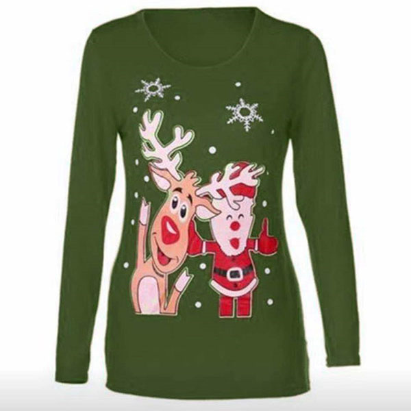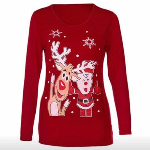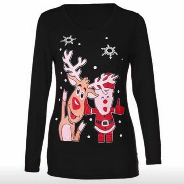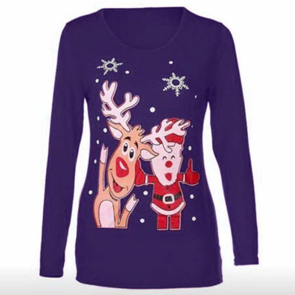You can have a comfortable day in this t-shirt thanks to the soft and breathable fabric. Moreover,the cartoon printed pattern design can lend you a dash of cute and playful vibes. Finished with long sleeve and round neck design,this simple,cozy yet stylish t-shirt is a good choice for your Christmas time.