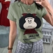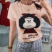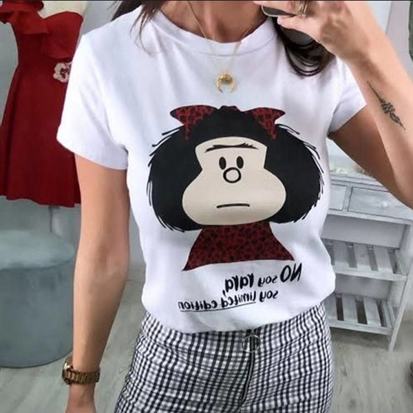 You can look so cute and playful in this t-shirt! The cartoon printed pattern design makes this piece look so lively. Crafted from soft and breathable fabric,with short sleeve and round neck design,this t-shirt can give you a comfortable day. Perfect fit for matching with different style bottoms.