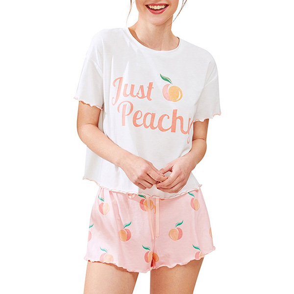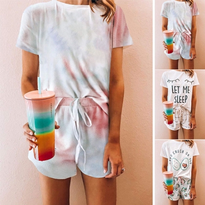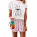 Cute Cartoon Printed Short Sleeve T-shirt + Shorts Nightwear Set