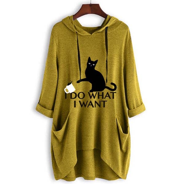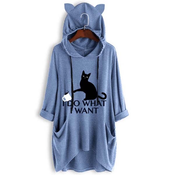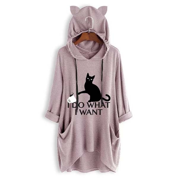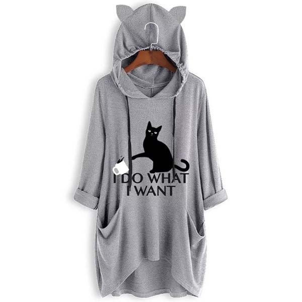 For a cute and playful style,you can turn to this sweatshirt for help. The cat printed pattern design makes