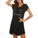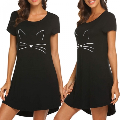 Cute Cat Printed Short Sleeve Round Neck Nightwear Dress