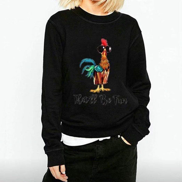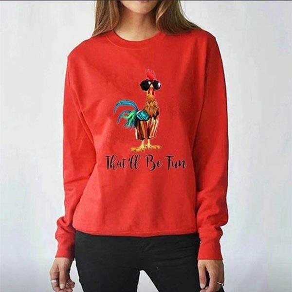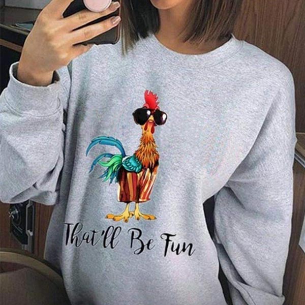 Cute Cock Printed Long Sleeve Round Neck Sweatshirt