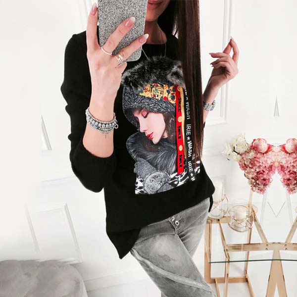 For a weekend look that is full of casual,relaxed and stylish vibes,we suggest you choosing this sweatshirt. The figure printed pattern design makes this piece look more attractive,while its soft and breathable fabric can ensure you a comfortable day. No matter what kind of bottom you pair with,it can hardly go wrong!