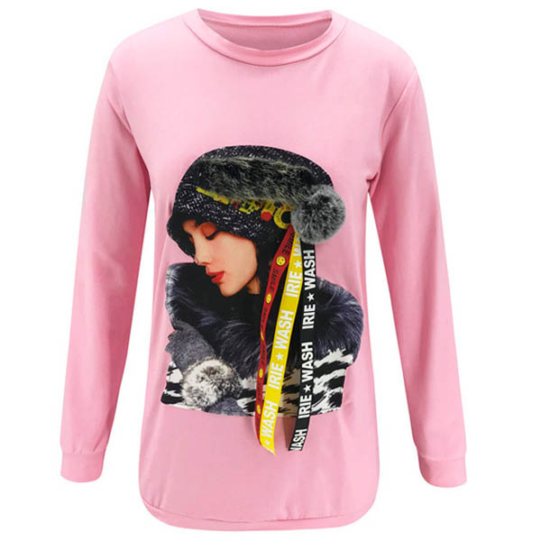 Cute Figure Printed Long Sleeve Round Neck Sweatshirt