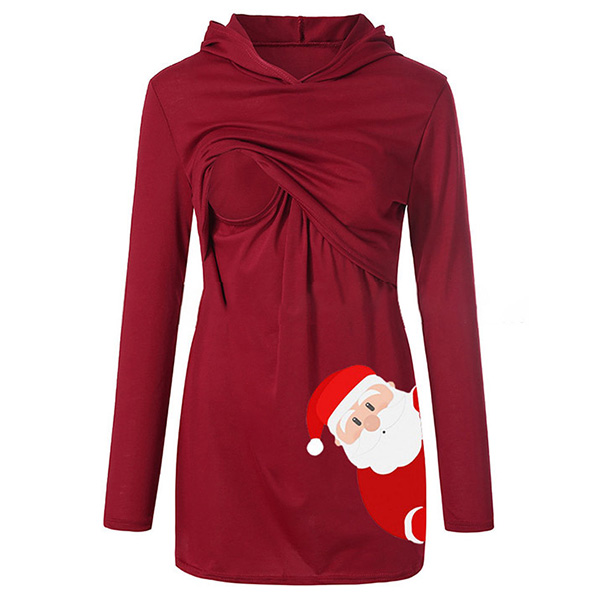 No matter for the pregnant women or the breastfeeding mothers,this multifunctional sweatshirt is a wise choice. The Santa Claus printed pattern design makes it look cute and playful,while the unique chest design makes it more convenient for these breastfeeding mothers. So why not take one?