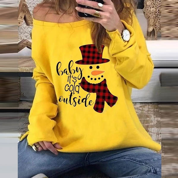 Crafted from soft and breathable fabric,with long sleeve,round neck and a loose silhouette design,this t-shirt knows how to give you a comfortable day. Moreover,the snowman printed pattern design will lend you a dash of cute and playful vibes. For your casual days and off-duty time,this t-shirt is your wise choice.