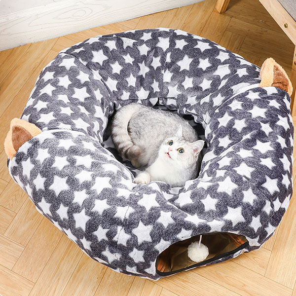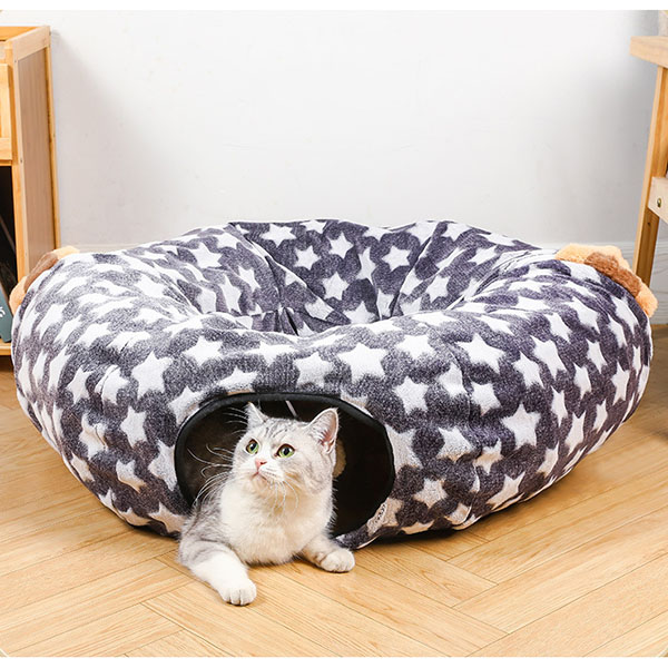 Rund plyschsovsäck för husdjur – halvsluten tunnel, extra varm och mysig